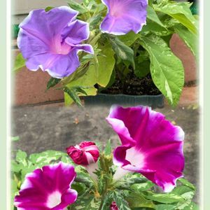 こんにちは😊 【ミニアサガオ サンスマイル】さんᙚᵐⁱᒻᵉ¨̮♡ 4色咲きました💓💓💓💓 夏も終わろうとしてるけど元気いっぱい୧⍢⃝୨