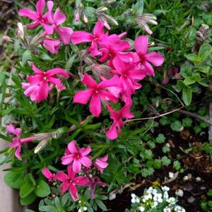 去年の芝桜がちゃんと咲いてくれました。 小さな白い花も枯れないで~ アリッサムかな? 自然消滅しないでね💞