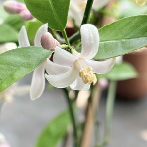 3年前購入のレモン🍋の木に花が咲きました!昨年も一昨年も全然咲かなかったのに!! 実がつくかはわからないけれど とりあえず室外機の影に置いて花散らしの風から守っております✊ 今年はどうなるのかな?