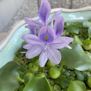 8月最終日になりました 連日の酷暑で身体がダル〜い😮💨 朝起きたら、玄関のメダカ鉢で ホテイアオイが咲いてる...🫢 初めて。気配にも気付いてなかった。😳 可憐で涼しげな姿。🤩 元気を貰えそうなスタート▶️です 😄