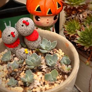 毎月13日と14日は葉挿しの日🏷️ 石の日🏷️ ちょこんとピータン🏷️ ハロウィン月間🏷️ などで投稿させて頂きます🪨 2023.10から葉挿しで育てている ウィンドオブチェンジ ずっと調子が良かったのですが 葉先が少し黒くなってたりして ちょっと心配です😥 周りに置いてあった多肉が 多分すす病?で☆になったのがあり これもそうなんじゃないかと 気になってます💦 葉挿しベビーは生まれても その後育て上げるまでが やっぱり難しいですね😓 石の日なので イシコロタンやオジゾータンも並べてみました みんなで見守ってね🙏 2pic目は 先日買い物に行ったお店で見かけた ミニビオトープというのかな 小さな金魚やメダカが泳ぐ姿に 癒されました 金魚も可愛いな〜❤️ と思ったんだけど 今の我が家は 金魚鉢を置くスペースがない😅 残念💦