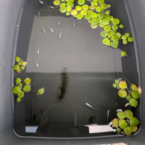 見えます? 今年初めてビオトープ?やってみたんですよ🪷 メダカのつがいを一組入れてあったんですが、さっき見たらウジャウジャ稚魚らしいのがいるんですよ え?ボウフラじゃないよね?メダカの赤ちゃんだよね? え?育て方調べなければφ(._. )