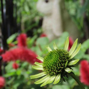 ルリマツリ、色が濃くなってきれいです。 いつも夏になったら残らない金魚草。場所が良かったらしく、夏も開花しています。今年から夏越しが難しいものは無理しないと思っていましたが、偶然の場所のマッチですね。 ルドベキアやエキナセアのグリーンチーム。ルドベキアは陽当たりがそこまで良くないところですが、2輪だけ2番花が上がりました。