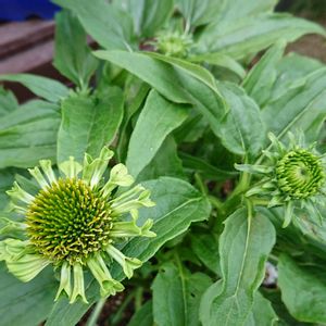 【エキナセア】 見切り品だったけど、ここまで生長してくれました🍀 てか 、ん? 購入した時はこんな感じじゃなかったのに? 確か白と緑だったような? 見切り品だったため、購入してすぐ花を✂️したので、しかも写真も撮ってなかったらしい😱 ま、これでも可愛いからOK💕