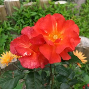 山の庭から✋ 母が見に行ってくれています🌹 プリンセス・ミチコ様✨✨ 思ったより濃いオレンジ! 香りはどうなのかな〜💕