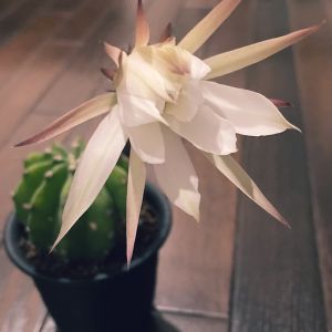 昨日投稿したサボテンのつぼみが 夜咲きました🤗🌼🌙 とっても良い香りでした.* ( ᵕ̤ ‧̫̮ ᵕ̤ ) 夜に咲く花がいい香りするのって ほんとなんだな〜(๑◔‿◔๑)👃