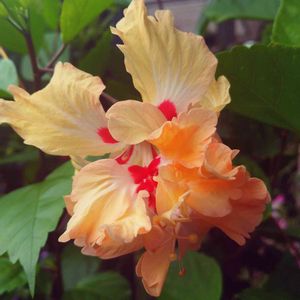 蕾を落としてばかりで やっと咲いてくれたハイビスカス😅 お気に入りの色なので大事にしたいです💕