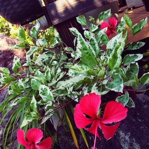 猛暑の中、斑入りハイビスカスが咲いてくれました❗️