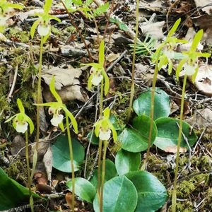 イチヨウラン 名前のとおり1枚の葉☺️☘️ 北海道、本州、四国に分布。深山の林内に生える多年草。 葉は1個で、卵円形で長さ3〜6cm。花茎は高さ10〜20cm で、先端に1個の花をつける。花期は5〜7月。