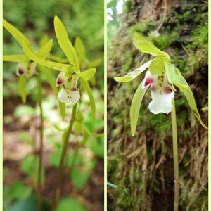 林の中で可憐に咲くアナタに会えて 嬉しかったよ💖(*゚∀゚*)… 『イチヨウラン』一葉蘭 ラン科 別名・ヒトハラン、ヒメヒトハラン 葉っぱが1枚しかつかないことからの 花名前。 自然界における発芽率が極めて低い希少種