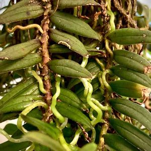 フウラン、ダンスしています。古い巨木に着生する蘭で、関東以西のほとんどの都道府県で絶滅危惧種指定されています。