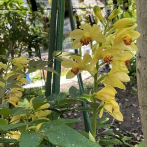 おはようございます♪ 昨年お迎えしたナゴランが開花しました。こちらも我が家に来てから始めての開花です。 とりあえず1年間育ててみた感想ですがフウラン、セッコクより水は欲しがるような感じがしました。🧐 我が家に来た当初はみるみる葉っぱが少なくなり心配していましたが、フウランより少し多めの水やりを意識しながら育てることでなんとかここまで育ってくれました🪴 今回開花数は4輪程でしたが、上手に育てられれば次回はもう少し咲いてくれるかも? フウランやセッコクには無いエキゾチックな花色、爽やかで甘い香りがいい感じです。