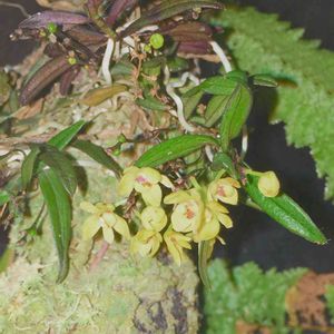 Den. striolatum デンドロビウム・ストリオラタム 温室に入れてたら開花してました。 この向きがしっくりきたので撮りましたが調べたら逆な気がする…
