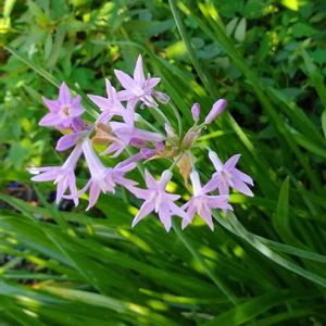 ツルバキア ネギ科 ツルバキア属 花言葉『小さな背信』 『残り香』 花は甘い香りがするのに 茎や葉はガーリック臭が するそうです。💜