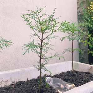 3年前の種から発芽して大きくなりました😊何本かなめくじに食べられてしまったので、捕獲罠を一緒に仕掛けてあります😉
