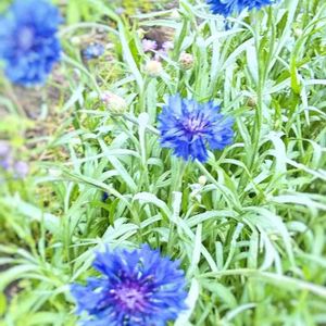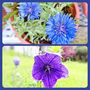 雨の合間にパチリ⭐ ヤグルマギクとキキョウ。 爽やかなブルーの花たちです。