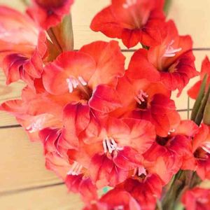強い雨に打たれて、曲がってしまったグラジオラス。 玄関の彩りに。