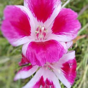 畑のミックスフラワーガーデン。 強い雨にも負けずに、 ゴデチアが咲いていました。 カネコ種苗 ミックスフラワー ロータイプ。