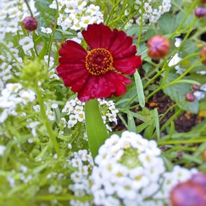 ミックスフラワー、9種類目。 ハルシャギク(矮性)。 黄色い縁取りのある花が咲くのかと思っていたら、真っ赤な花でした。 強い雨に打たれても、倒れず丈夫です。 カネコ種苗 ミックスフラワー ロータイプ