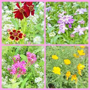 雨の合間にパチリ☆ 本日のミックスフラワーガーデン(畑に植えたもの) 黄色い縁取りのハルシャギクも咲きました。 ミックスシードは、一度に色んなお花が楽しめていいですね💕 矮性ではない、背の高くなるタイプのお花も育ててみたいです✨ カネコ種苗 ミックスフラワー ロータイプ。