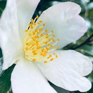 おはようございます^ ^ 一重の💠サザンカ💠 花びらの先がほんのりピンクで…💕 美しい🫧🫧 10月29日 吉野山にて