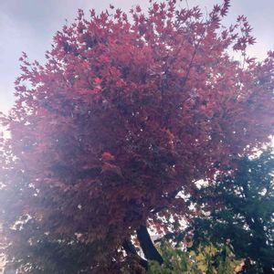 寒い…もう気温一桁の季節…! ふと上を見上げると…気付いた時には、紅葉が真っ赤に染まってました🍁
