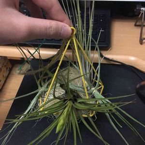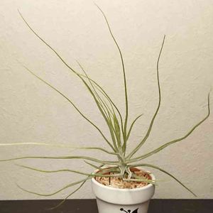 細い針金のようなチランジア、 シーディアナを空のマグカップで風通しよく育成中。 しっかり固い葉が四方八方に広がって可愛い。 7月28日にお迎えしてから、 真ん中の成長点から新しい葉がピッピッと伸びてる。 こまめに葉水をあげる楽しさよ。 ○チランジア(エアプランツ) 一般的に葉が薄いものや細いものは水分を多く欲しがり、葉の厚いものは乾燥に強い場合が多い。 置き場所は風通しのよい明るい日陰が適している。