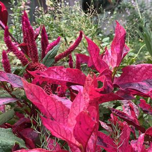 赤葉千日紅!レッドフラッシュなんですねひと夏屋内で過ごしたら緑葉になってきました。笑 しかもシャープな画質調整したらドライみたいに…😅💦 後ろにハイビスカスがわさわさしてます。 花がでないから明日から表にだそうかな?