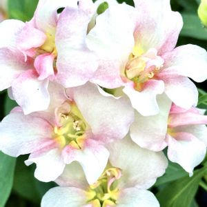 コロンとした丸みのある花形が愛らしい薔薇・「アルヌワブラン」で、おはようございます🩷🤍💚✨🌹✨💚🤍🩷 淡いグリーンの花弁が、中心に向かうほどに白さを増してゆき、先端だけほんのりピンクに染る、パステル画のような優しいグラデーションも素敵で、気に入っています🥰🙏🌹💞 "アルヌワブラン"は、新品種のバラ開発を行う広島県のバラ種苗会社・」今井ナーセリー」作出の日本のバラ🇯🇵 https://www.hanagoto.daiichi-engei.jp/syunka/383.html 花の開く速度がとてもゆっくりで、花持ちが非常に良いのも魅力ですが、樹勢も大変強い品種のようですね❣️ …この薔薇を作出された今井清さんという方について改めて知りたくなり、お調べてみましたが何故か会社のHPは拝見できず…💻💦 代わりに、SNSのnoteにされていた、今井さんと薔薇にまつわる記事を見つけたので、GSにも紹介させて頂くことにしました📲 https://note.com/hiro_iwasawa/n/n284aa51b3867 ー花言葉は、「唯一無二」、「愛らしさ」…他。