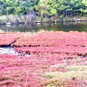 10/24 浅口市寄島町 環境省のレッドリストで絶滅危惧の II類に指定されてるアッケシソウが 紅葉しとったよ〜😎