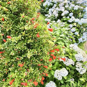 連日の猛暑続きから やっと☔が降ってきました 雷雨⛈️ですが恵みの雨に 庭の紫陽花 濡れてイキイキしてます😊