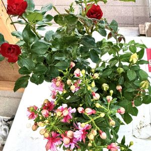 雨の前に☀️ 昨日までに咲き始めているバラたちの記念撮影🤗 4枚目は左上から時計回りに 💗プリンセスドモナコ ❤️チャールストン 🧡サンガッティス 🩷コウフンレン(香粉蓮) 🩵ブルームーン 🩷プリティレディ 挿し木からのバラ達も4〜5年経って急に大きくなり、綺麗に咲いてくれました🎶