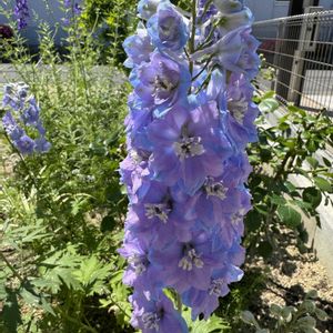 デルフィニウムの台頭 カミーユさんを剪定したことで、俄然存在感をアピールしてくるのが、るこちらのデルフィニウムさん😆 ラグランジアクリスタルヴェールもそうですが、青系のグラデーション、大好きです💕 美しい✨✨✨ 別の種類のデルフィニウムは、ヒョロ長ーくなり、青じゃなく紫になっております。 デルフィニウムも土の酸度とかで色が変わるのでしょうか⁉️