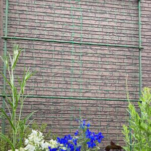 😅😅😅 少し蔓が伸びてきたので… るこうあさがおの為に準備しました‼️ 手前の花壇に植えてある花で、まだ小さなるこうあさがおが隠れちゃってますが… 頑張って支柱&ネット準備したので 投稿しちゃいました😅💦