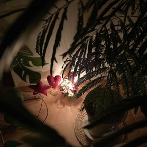 こんばんは。 お疲れ様です🙇♀️ クリスマスツリー出しました🎄 コンセント使うところばかりで、ここに置いてみたのです。 眠りにつくエバーちゃんの間からパチリ🌿 あっ、ご飯炊かなきゃ。