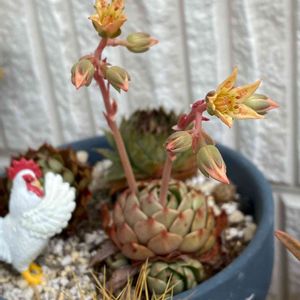 淡い色のキレイなお花🌼 咲きました🥰 今日は娘の家庭訪問でした😅 午前中で仕事を切り上げ せっせとお掃除❣️玄関先の多肉の 開花見つけました🥰 先生と話の最中にみーこ🐈が トカゲを捕まえて🦎きて 窓際でウロウロしてました😆 先生は背を向けていましたが 私からはしっかり見え 吹き出しそうでした😂🗯