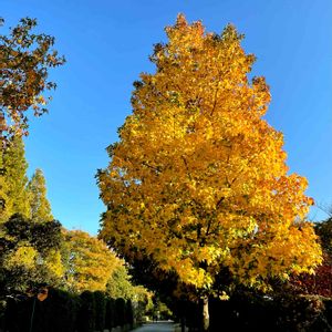 おはようございます 青空とのコントラストが美しい〜 🍁•*¨*•.¸¸🍁*・゚🍁 🏷月曜日にビタミンカラー 参加させていただきます💛