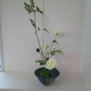 花展にて 新風体生花 こうりやなぎ ニユーサイラン トルコキキョウ