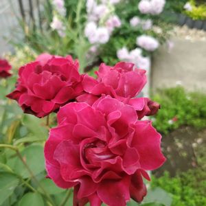 🌹オディセイア🌹 ロサオリエンティス作出の波状花弁の中輪バラ。 つるバラにもできるそうだけど、うちでは自立シュラブ。80cmくらい。3年目。 ダマスクの香り+ハーブ、スパイスだそう。よくわからないけど、とにかくいい香り~😆 四季咲きでーす🙆