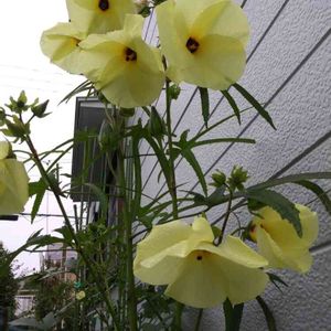 トロロアオイのツインタワー🗼 黄蜀葵・・・別名花オクラ🌼