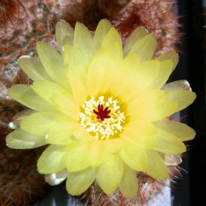 日が出ないので、咲きそうなサボテンを 室内の育成ライト下に移動してみた🌵🔦 pic①②③ Rebutia papirisy レブチア・パピリシー 5月25日満開🌸 真っ赤なお花♥️見事な咲きっぷり🤗 pic④⑤ Parodia mammulosa パロディア(ノトカクタス) 鬼雲丸 '22年11月にHCから小さな鬼雲丸をお迎え 2年半経ち、やっと咲いてくれました💛💛 黄色一色の花びら💛真ん中の雄しべだけ赤❤ 美しいお花です😍 pic⑤ お外に居た、今にも咲きそうな鬼雲丸 パピリシーの花で 🏷真っ赤な火曜日 🏷可憐な火曜日 鬼雲丸の花で 🏷心にメローイエロー 鬼雲丸の毛で覆われた蕾で 🏷おけけの日 参加させていただきます(⋆ᴗ͈ˬᴗ͈)”