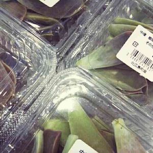 野菜売り場に、多肉の葉?? 野菜でした💦💦 ⬆ 多肉と判明しました✨ 朧月だって~(≧ω≦*) グラパラリーフ (アップルリーフ) りんごの味がするそうです🍎 生で食べれるんだって〰(^_^;)