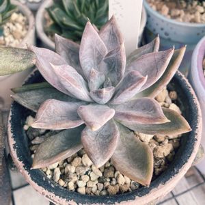 薄紫のような、シルバーがかってるような…いい色です✨ 紫っぽいのが好きなのか、つい選んでしまいます🥰 くっついてるけど、かわいいのでそのまま植え替え😉