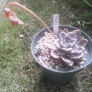多肉棚中段にいるベバリーさんも密かに花を咲かせていました😊 前picは、2月6日❗️ その時すでに花芽が❗️ 開花まで3ヶ月かぁ 🏷️ムッチリぷくぷくの日に参加します