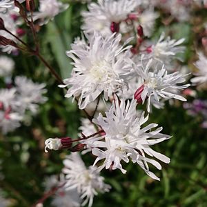 おはようございます😃 種から育てたリクニスフロスククリ・ホワイトロビンです。 去年の11月から冬の間も花が絶え間なく咲いて寂しい冬の花壇を彩ってくれました🤍 新しい花穂が何本も上がってきました。 切れ込みが素敵な清楚で涼しげなお花です🤍