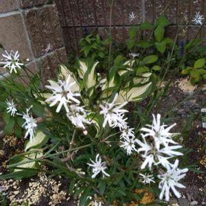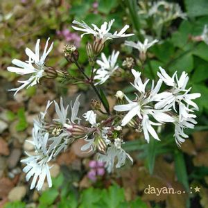 リクニス•フロスククリ ‘ホワイトロビン ’ 長い…💦 別名 カッコウセンノウ 花茎が外側へ外側へと伸びて まとまらないので、何年も前に100yenショップで買った柵で寄せたけど… やっぱりまとまりがない😅 でも、可愛い花( ⸝⸝⸝•_•⸝⸝⸝ )♡︎♡︎
