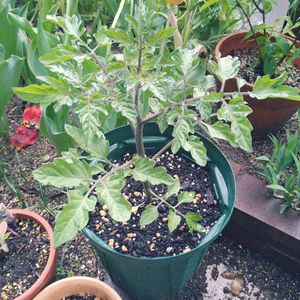 ミニトマト(ぺぺ) ポット苗を植えて3週間🐤 もうすぐお花が咲きそう🌼 極早生らしく生長早くて楽しい(*´ェ`*)