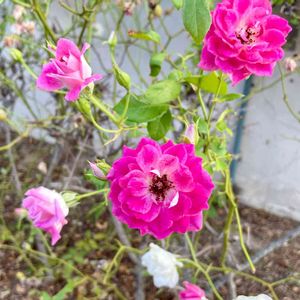 孫の風邪を貰ったみたいで、昨日は39度の発熱💦💦💦あんまり久し振りなので、どーしたの私😵となりました なので寝室のベランダから、古株の名無しの薔薇さん達です 今朝は微熱程度なので休み休み家事を☺️合間にGS💕