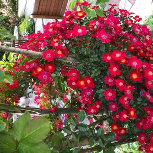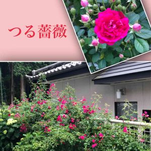 一昨年誘引してから、薔薇🌹の花が沢山咲くようになりました。😄 手前へ山椒です。