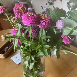 今日はお友達を訪ねるので、庭からのお花をお土産にすることにしました。気に入ってもらえるといいな〜